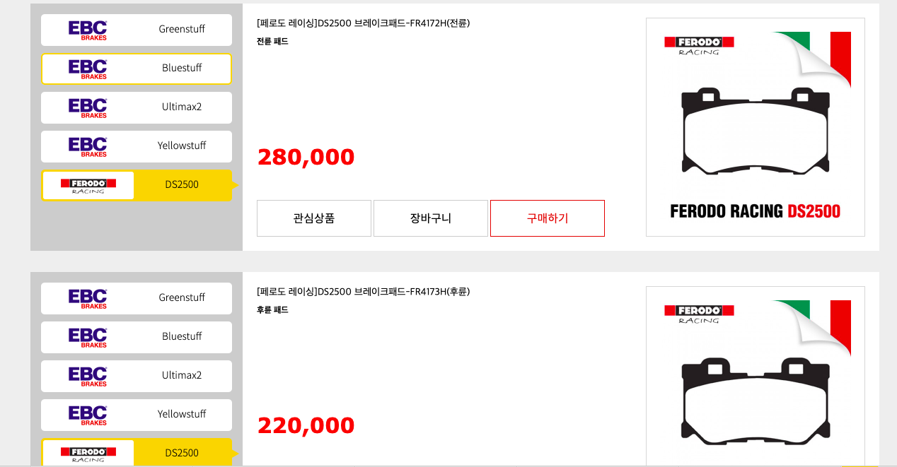 스포츠카 등에서 많이 쓰는 Ferodo제품도 있네요. 전륜 28만, 후륜쪽 22만,