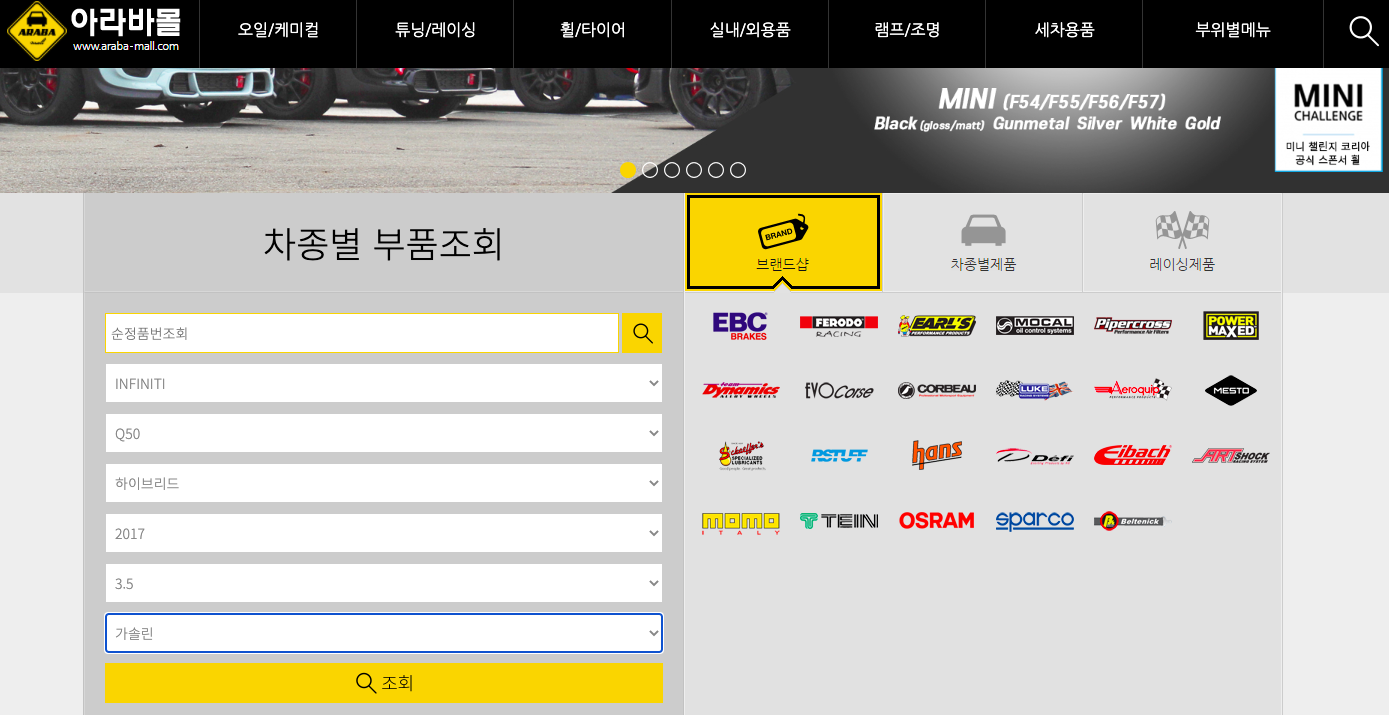 여러 제조사 부품이 있습니다. 그 중 제 차에 맞는 부품을 검색합니다.