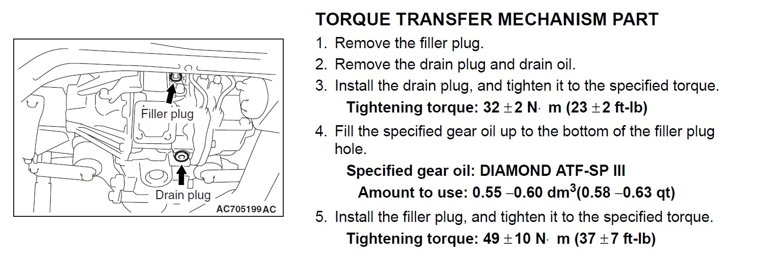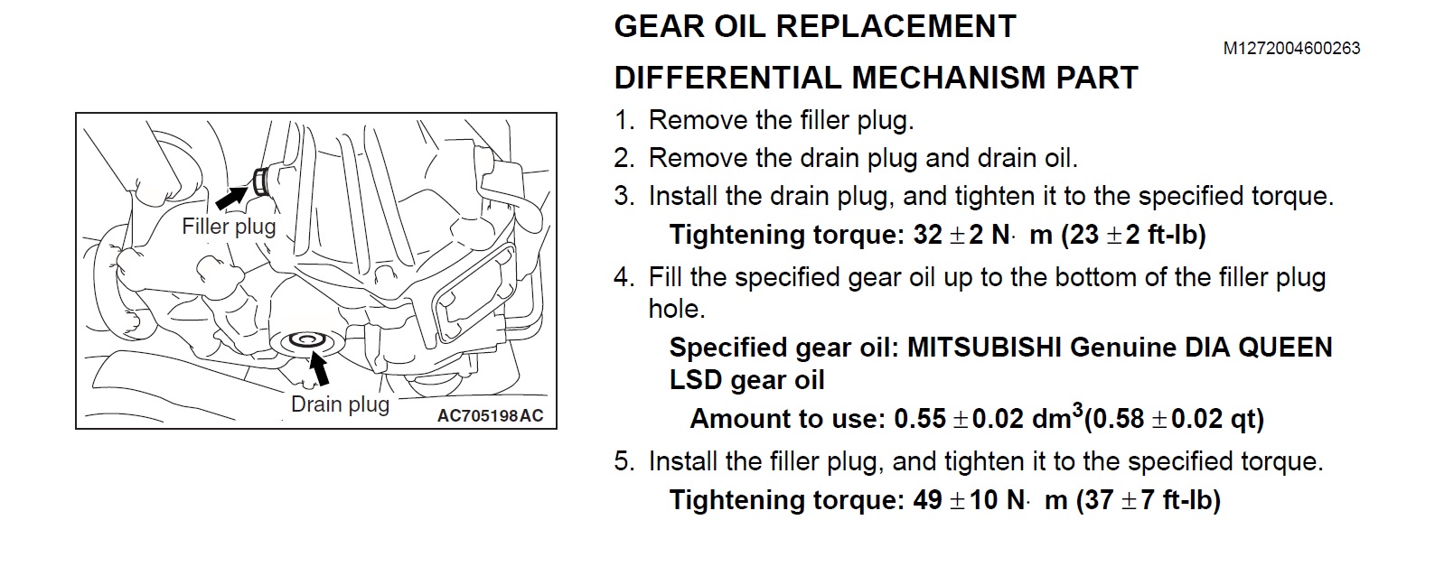 Specified gear oil: MITSUBISHI Genuine DIA QUEEN LSD gear oil
