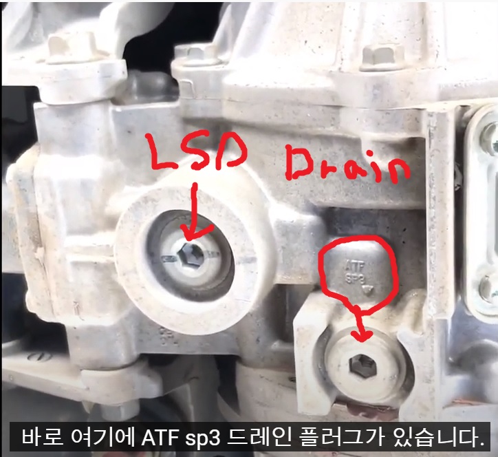 4. 차량 수평으로 놓고 Drain , 완료 후 Drain plug 잠금(토크 49 N.m)