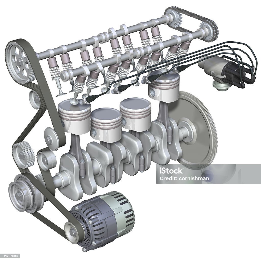 위 그림에서 피스톤-커넥팅 로드와 연결되 크랭크 축과 그림 상단의 흡 배기 역할을 해주는 캠축과의 연결을
