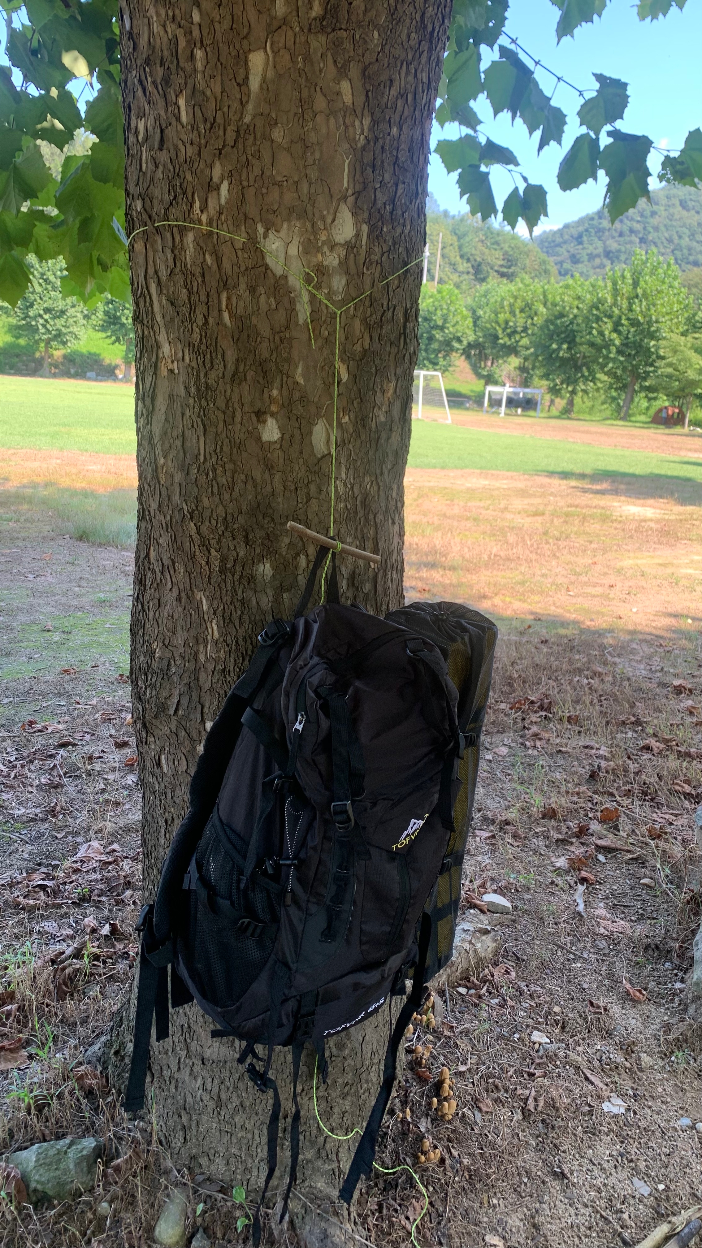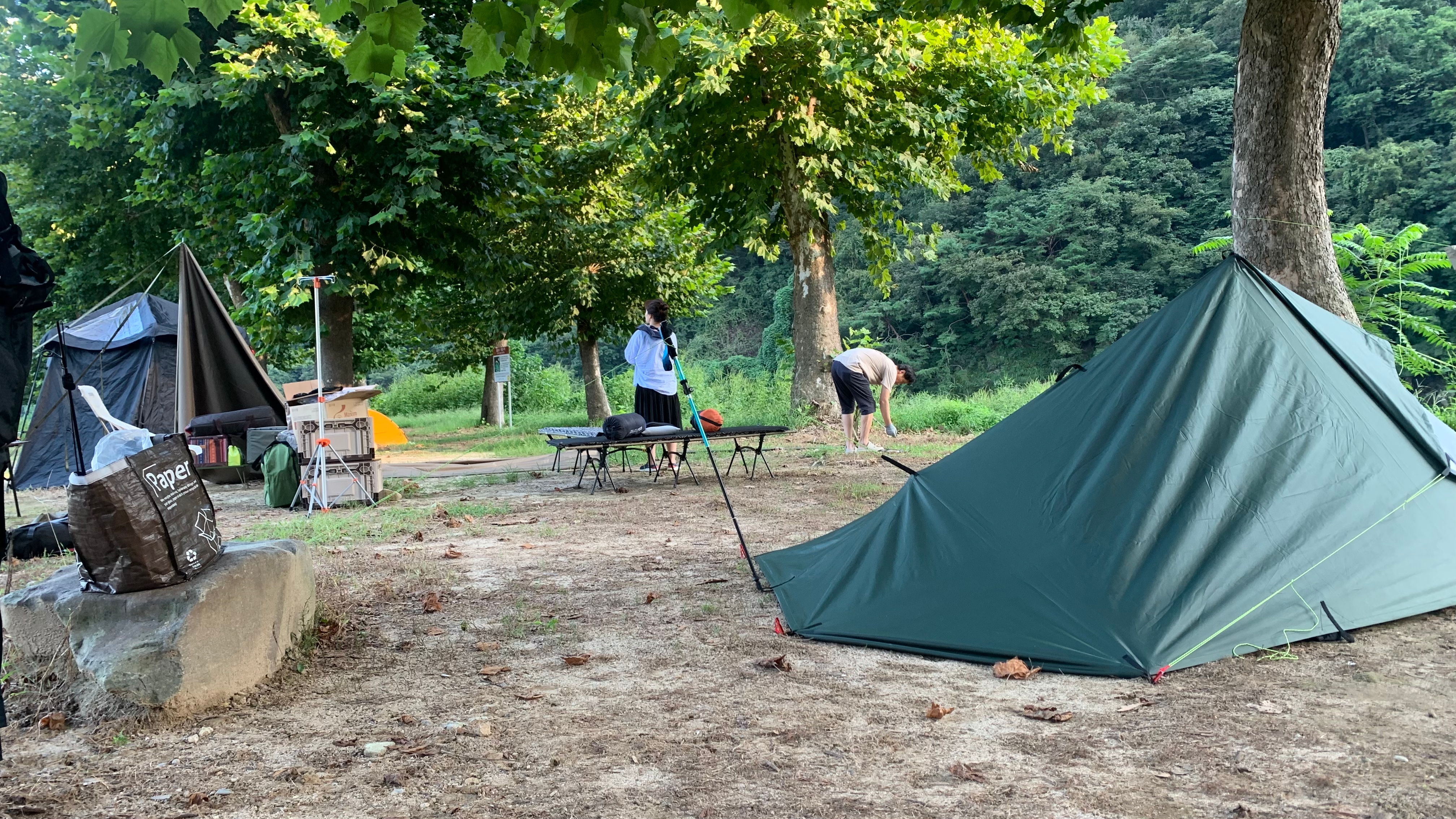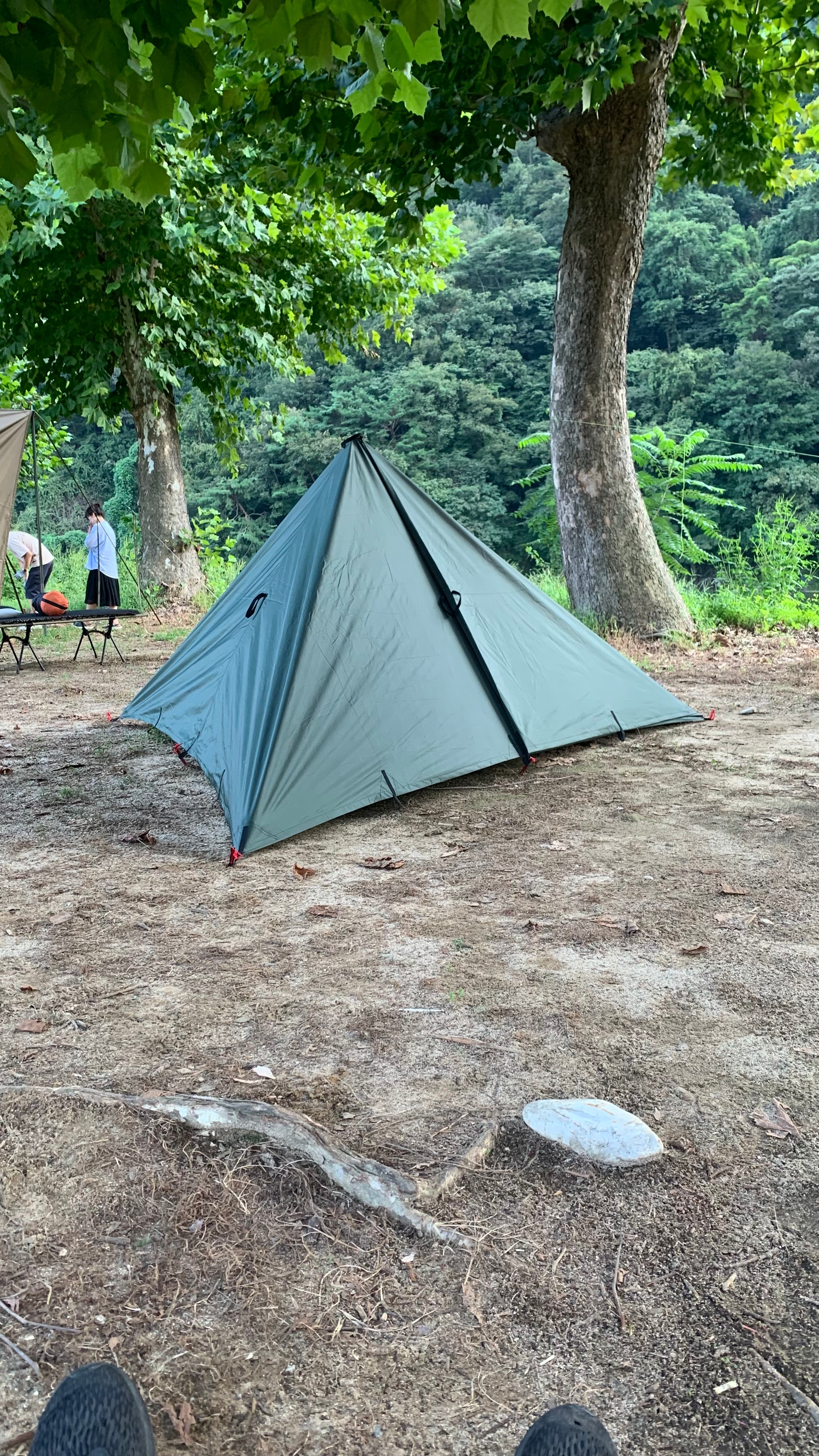 마지막 사진은 타프로 만든 티피셀터 와, 잠깐 쏘가리 낚시 하고 와서 말려 놓은 웨이더가 있네요..