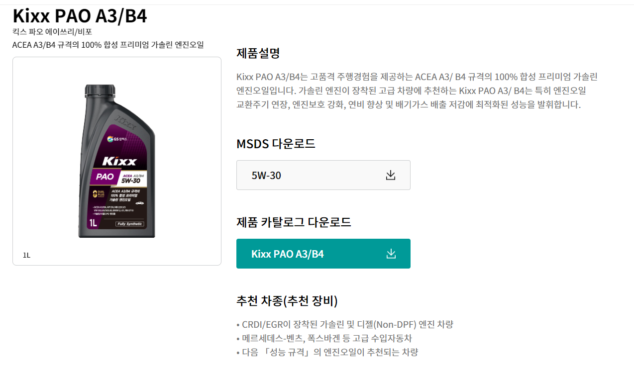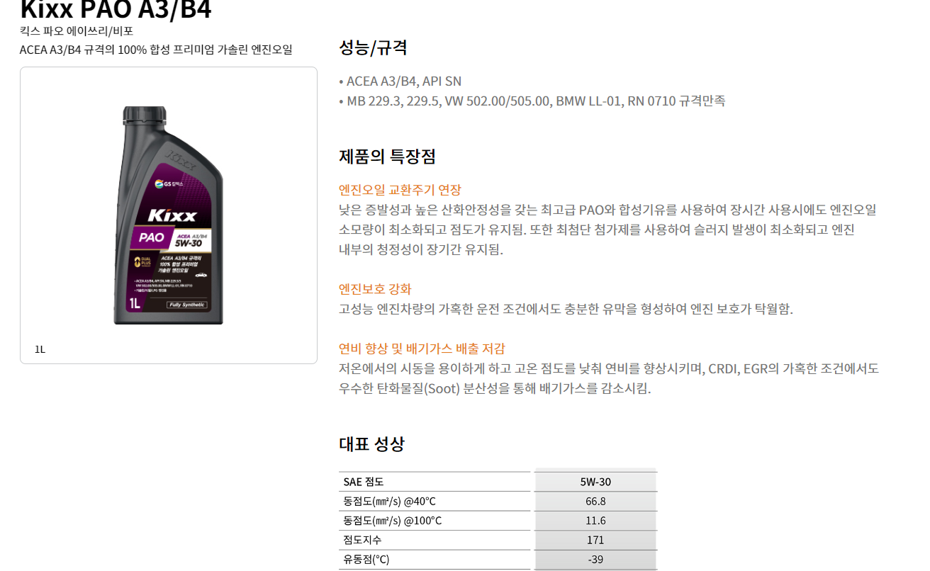 PAO급 엔진오일이란? 파오 엔진오일